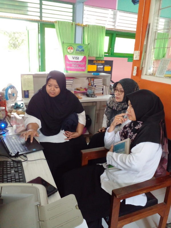Pustakawan MTsN 2 Sleman Sharing ilmu mengenai sistem layanan perpustakaan di madrasah.