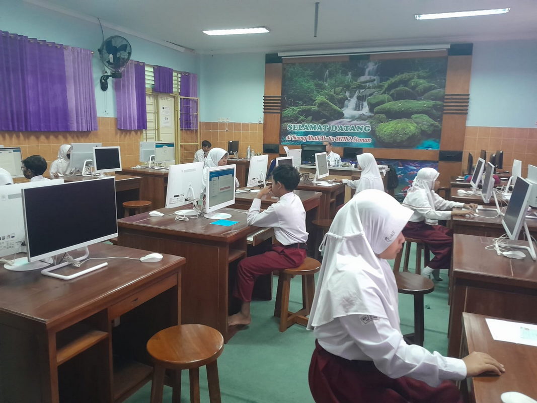 Sleman (MIN 2 Sleman) – Kementrian Pendidikan dan Kebudayaan Republik Indonesia menyelenggarakan Asesmen Nasional Berbasis Komputer (ANBK) sebagai sarana untuk mengetahui potret Pendidikan di Indonesia. ABK juga digunakan untuk menilai mutu madrasah/ sekolah. Sehubungan dengan hal itu, MIN 2 Sleman mengikuti ANBK secara semi online di ruang multimedia MIN 2 Sleman. Untuk mempersiapkan pelaksanaannya, kemendikbud menyelenggarakan gladi bersih pada Senin – Selasa (09-10/10/2023).