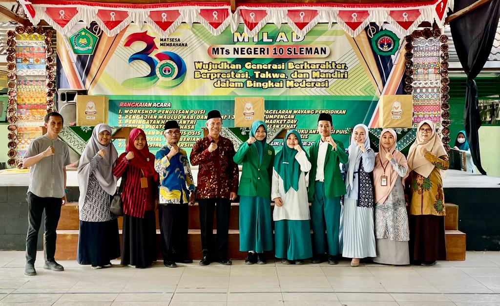 Sleman (MTsN 10 Sleman) MTsN 10 Sleman kedatangan tim Pranata Humas Kantor Kementerian Agama (Kankemenag) Sleman, Kamis ( 12/10/2023). Tim terdiri dari Isa Anshori, Nismatun Dian Islami, Dwi Aji Raharjo, dan Titik Nur Farikhah. Kedatangan tim Humas dimaksudkan mempersiapkan pembuatan podcast Kankemenag Sleman dengan mengusung tajuk Siswa Madrasah Berprestasi. “Kami mendata MTsN 10 Sleman memiliki banyak prestasi yang inspiratif, “ungkap Titik Nur Farikhah tentang alasan dipilihnya MTsN 10 Sleman.