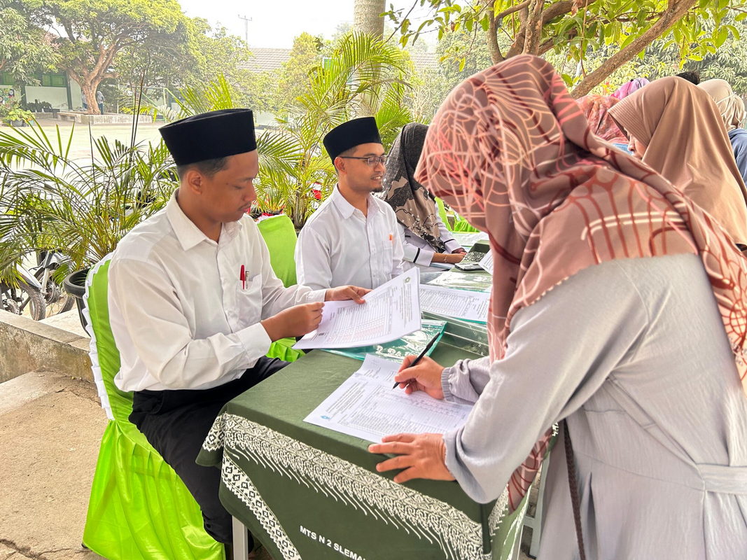 Sleman (MTsN 2) – Pembagian hasil PHB (Penilaian Harian Bersama) serta AHB (Asesmen Harian Bersama) diadakan oleh MTs Negeri 2 Sleman pada Selasa (10/10/23). Kegiatan tersebut diadakan di area Masjid Darul Arqom atau masjid madrasah. Orang tua atau wali murid yang hadir terbagi dalam dua sesi, yaitu sesi pagi pada pukul 08.00 WIB dan sesi siang pada pukul 10.00 WIB.
