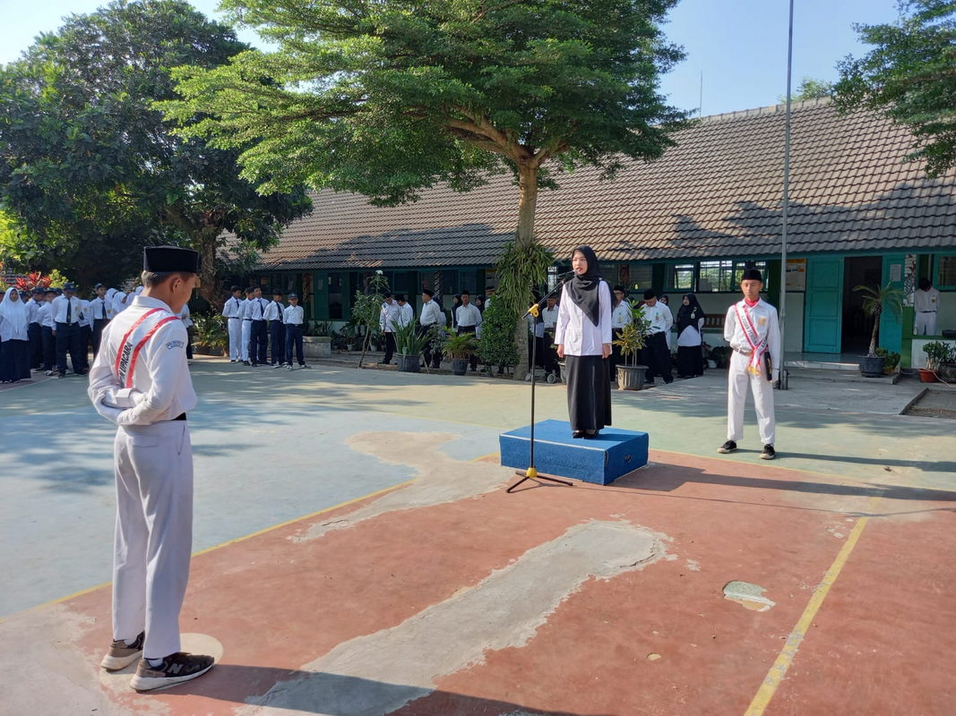 Adapun yang bertugas pada upacara di kesempatan kali ini adalah peserta didik dari kelas 8E dibantu dengan tim paduan suara dari kelas 7A, sedangkan untuk Pembina upacara adalah Eva Mayasari, S.Pd selaku guru Matematika. Dalam amanatnya Eva Mayasari, S.Pd. mengajak peserta didik untuk Bersama-sama melakukan pengolahan sampah khususnya sampah botol plastic.