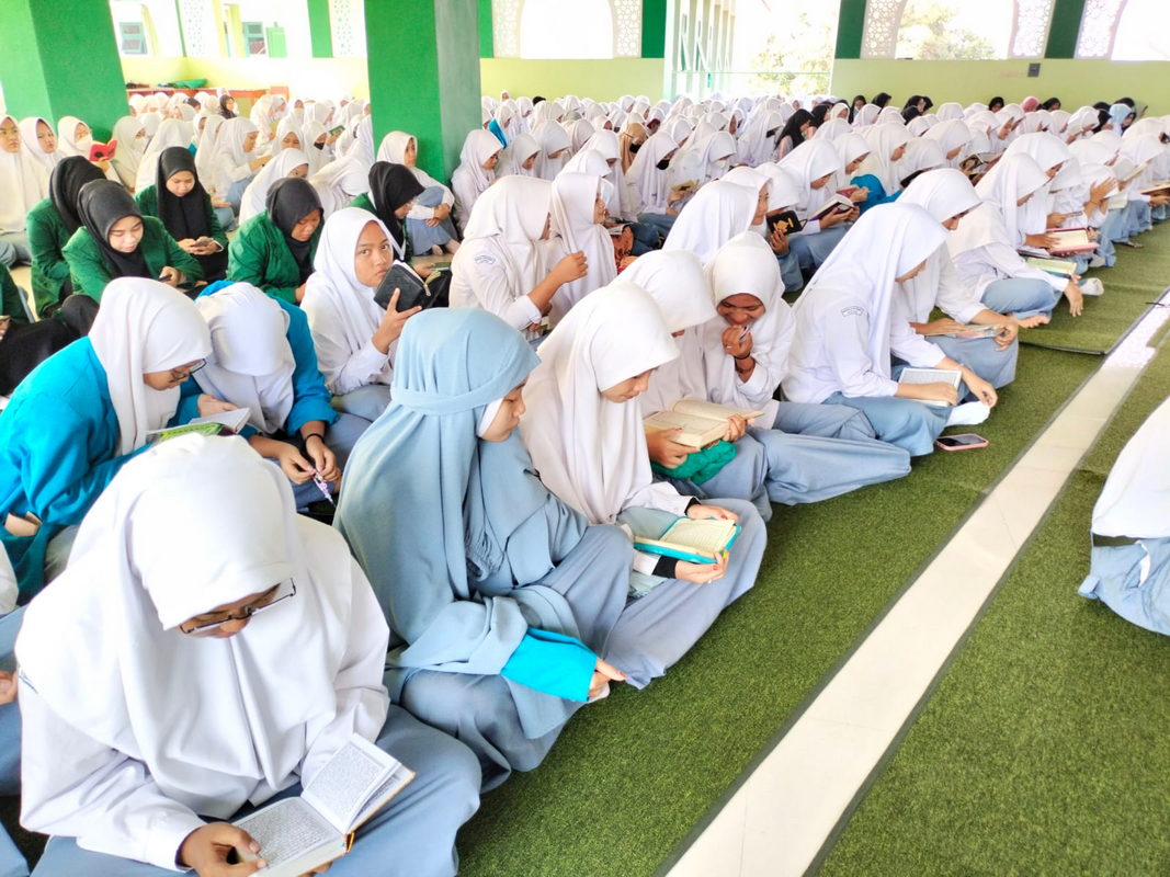 Setiap siswa diwajibkan untuk membawa al-Qur’an dan tidak diperkenankan membawa handphone. Dengan khidmat siswa menyimak lantunan alqu’an sehingga kegiata berjalan dengan lancar. (Qoma)