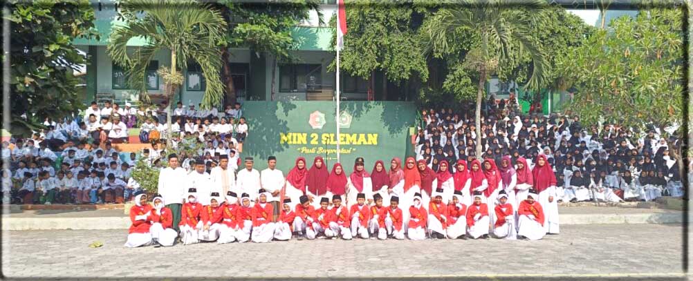 Sleman (MIN 2 Sleman) – Guru, pegawai, dan siswa MIN 2 Sleman mengikuti kegiatan upacara bendera dalam rangka memperingati Hari Santri Nasional 2023. Upacara dilaksanakan di lapangan MIN 2 Sleman Ahad, 22 Oktober 2023.