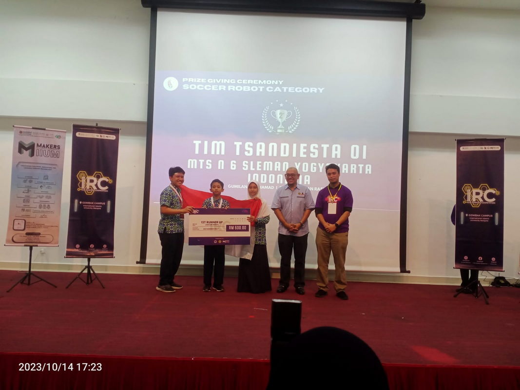 International Robotic Championship (IRC) yang diadakan di IIUM kali ini diikuti oleh 108 tim dari 3 negara yaitu Indonesia, Malaysia, Thailand. Kepala MTsN 6 Sleman Jazim Kholis, S. Ag mengatakan bahwa suatu kebanggaan bahwa Tim MTsN 6 Sleman mampu meraih Runner Up dalam kejuaraan bergengsi di Malaysia. Sedang juara pertama diraih oleh Codetronics Delta, yang merupakan tim malaysia “Semoga menjadi inspirasi bagi para siswa MTsN 6 Sleman untuk berprestasi di dunia International,” kata Jazim lagi. Gumilang, siswa kelas 9A mengungkapkan bahwa dirinya dan teman-teman sesama tim merasa bangga atas pencapaian ini mengingat tim-tim yang maju lomba merupakan tim yang hebat. “Walaupun lomba berjalan alot, namun akhirnya kami bisa meraih juara kedua.” kata Gumilang.