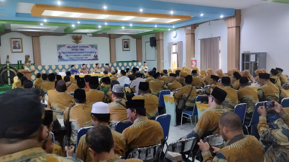Sleman (MTsN 6 Sleman)–Sejumlah 126 Tamu Rombongan dari Unsur Kepala Madrasah dan Guru berkunjung di MTsN 6 Sleman. Kunjungan ini merupakan Tindak Lanjut dari hasil studi tiru Kepala Kantor Kemenag Kabupaten Gresik beberapa bulan yang lalu. Kunjungan dimaksudkan untuk melakukan studi tiru program yang ada di MTsN 6 Sleman berlangsung pada hari Jumat (29/9/2023) di Ruang AVA MAN 3 Sleman. Hadir pada acara penyambutan Analis SDM Aparatur Ahli Muda pada Seksi Tenaga Kependidikan Bidang Pendidikan Madrasah Kanwil Kemenag DIY H. Jauhar Mukhlis Sulistyanto, S.Ag., M.Pd.I.mewakili Kabid Pendidikan Madrasah Kanwil Kemenag DIY, Kepala MAN 3 Sleman, Ketua Komite MTsN 6 Sleman Qomarizaman dan seluruh perangkat MTsN 6 Sleman.