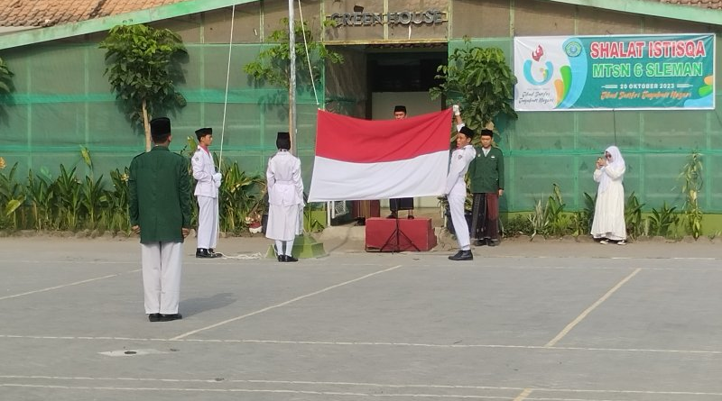 SelengkapnyaSleman (MTsN 6 Sleman)–Upacara Hari Santri 2023 di gelar di halaman MTsN 6 Sleman bersama MIN 1 Sleman, MTsN 6