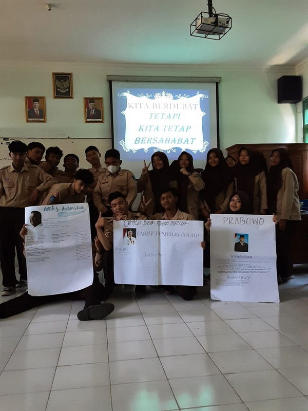 Kamis (2/11/2023) dipandu oelah guru PKn, Rini Widayati kelas X mengadakan simulasi debat capres. Simulasi ini merupakan implementasi materi “ Dinamika Demokrasi “sebagai upaya memberikan pemahaman tentang pentingnya politik praktis kepada para peserta didik. Simulasi debat capres yang berjalan dengan sangat seru, serius seolah-olah mereka benar-benar menjadi tim sukses dar imasing masing calon. Tetapi etika berdebat tetap dikedepaknan dengan moto “beda pendapat tapi tetap bersahat “.Politik praktis harus diberikan kepada generas muda karena merekalah pemegang estafet pemerintahan yang akan menggantikan para penguasa. Berbekal praktik baik yang diperoleh secara langsung di bangku pendidikan maka diharapkan tumbuhnya kesadaran bahwa kekuasaan yang diperoleh adalah amanat yang harus dipertanggungjawabkan kepada rakyat. Menurut Rini Widayati selaku guru PPKn menegaskan bahwa siswa juga berhak untuk belajar memberikan penilaian dan pendapat serta partisipasi yang sama dengan warganegara yang lain karena mereka juga memiliki hak yang sama di bidang politik.(rw)