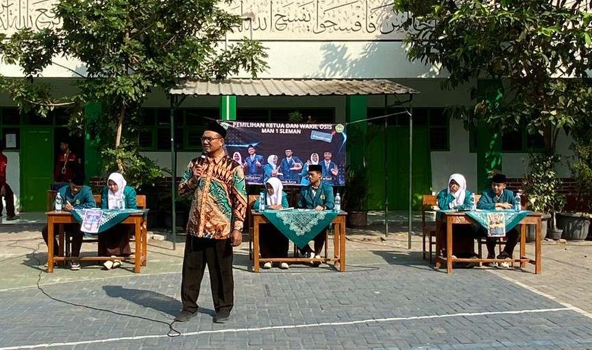 Sleman (MAN 1 Sleman) – Kegiatan Orasi Pemilihan Ketua OSIS (Pemilos) MAN 1 Sleman masa bakti 2023-2024 berlangsung di halaman Madrasah, Kamis (9/11/2023). Kegiatan ini berupa pembacaan visi, misi dan program kerja setiap kandidat calon ketua OSIS dan sesi tanya jawab dengan audience, yaitu seluruh warga MAN 1 Sleman, baik siswa maupun guru.
