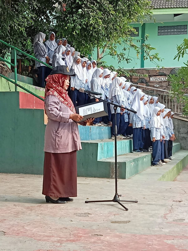 Sleman (MIN 2 Sleman) – Guru, pegawai, dan siswa MIN 2 Sleman mengikuti upacara bendera dalam rangka memperingati hari pahlawan 2023. Upacara hari pahlawan dilaksanakan di lapangan MIN 2 Sleman pada Jum’at (10/11/2023).