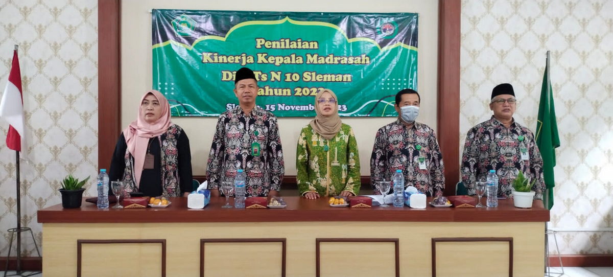 Sleman (MTsN 1 Sleman) – MTsN 10 melaksanakan Penilaian Kinerja Kepala Madrasah (PKKM) Rabu (15/11/2023). Bertempat di aula labaoratorium IPA, rangkaian PKKM diawali acara seremonial pembukaan. Hadir pada kesempatan itu Kasie Dikmad Kanwil DIY Noor Imanah, Hj. Anita Isdarmini, S.Pd.,M.Hum. (JFT Pengembang Teknologi Pembelajaran Pendidikan Madrasah Kantor Wilayah Kementerian Agama DIY) serta pengawas madrasah Kementerian Agama Kabupaten Sleman Drs. Mujiyono,M.Pd, dan Drs. Daryono,M.Pd.I.