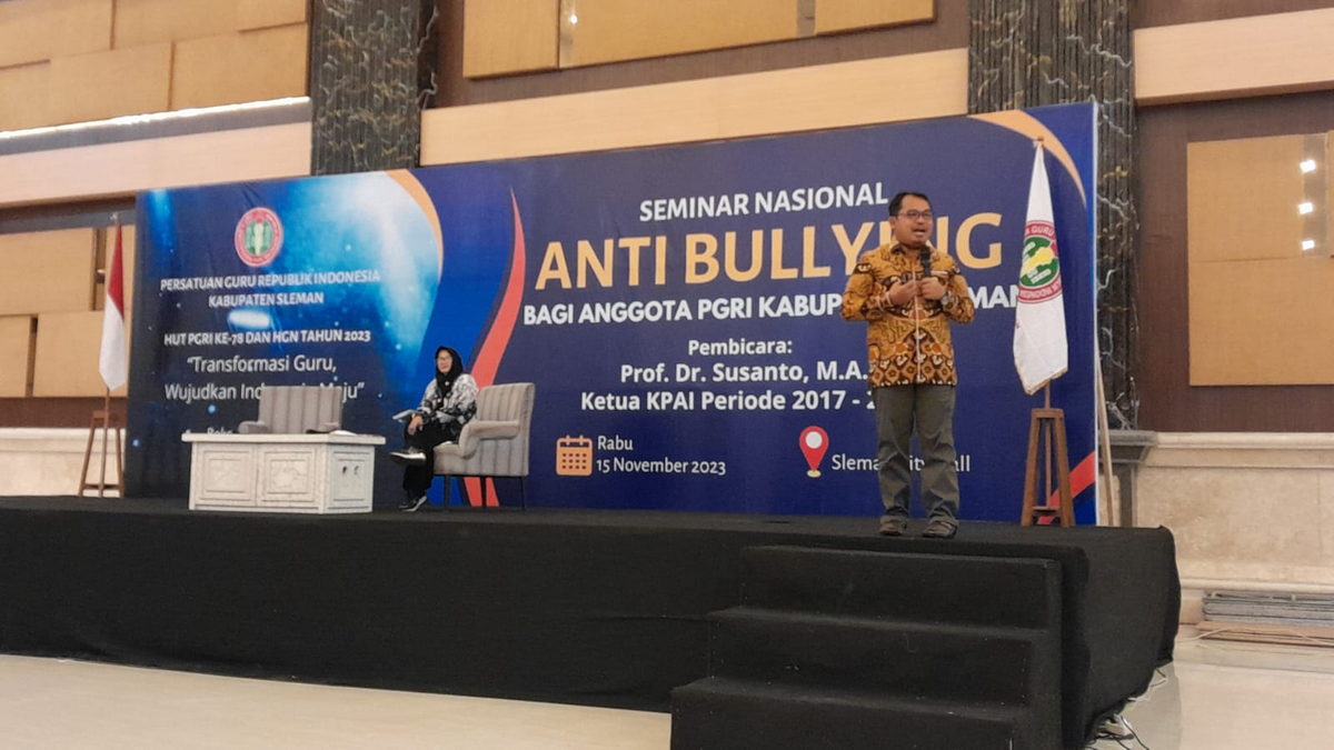 Dalam sambutannya, Ketua PGRI cabang Sleman Mujiyanta, mengatakan kegiatan ini dilatarbelakangi oleh keprihatinan dari organisasi profesi atas maraknya kasus bullying yang terjadi di dunia pendidikan, baik kekerasan antar anak, antar siswa, bahkan wali murid dengan guru.