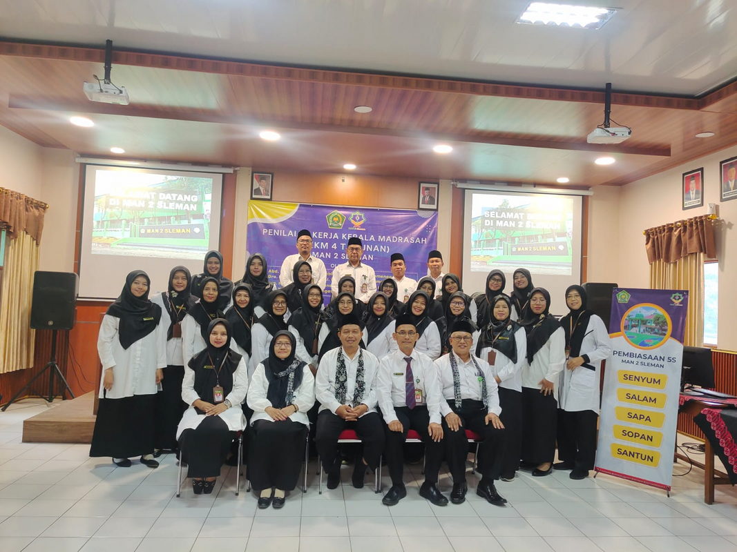 Sleman (MAN 2 Sleman)- Apresiasi yang disampaikan dari tim penilai menjadi energi positif serta membahawa kebahagiaan bagi MAN 2 Sleman. Penilaian Kinerja Kepala Madrasah (PKKM) 4 Tahunan MAN 2 Sleman ini dilaksanakan pada hari Senin (20/11/2023) di Aula MAN 2 Sleman.