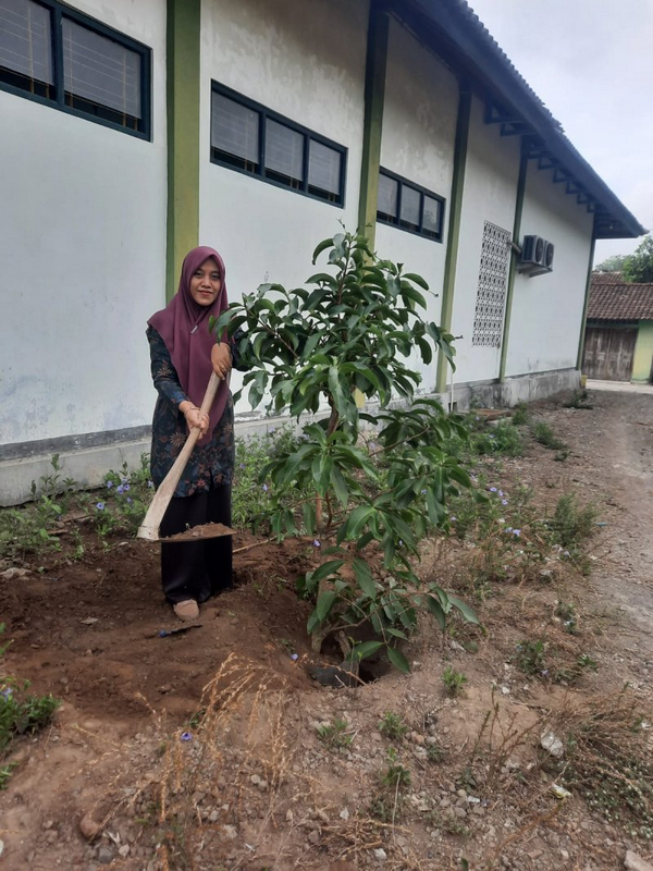 Lestarikan Lingkungan, Ka TU MTs N 8 Sleman Menanam Pohon Jambu