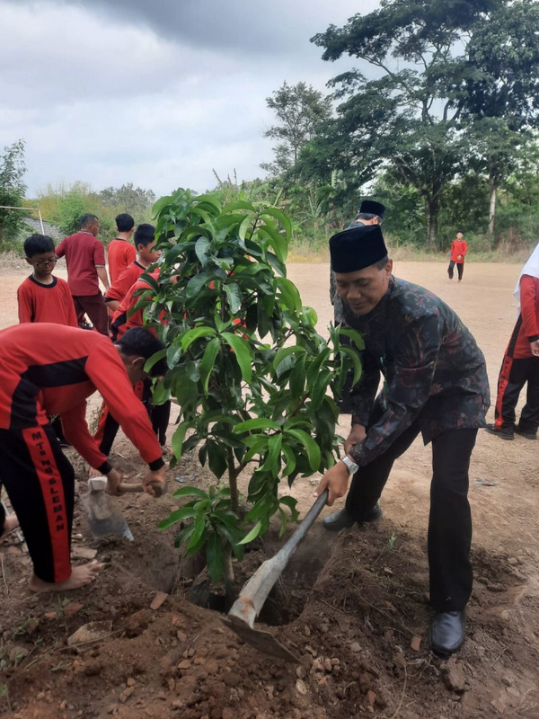 Selamatkan Bumi, Kepala MTs N 8 Sleman Menanam Pohon Mangga di Lingkungan Madrasah