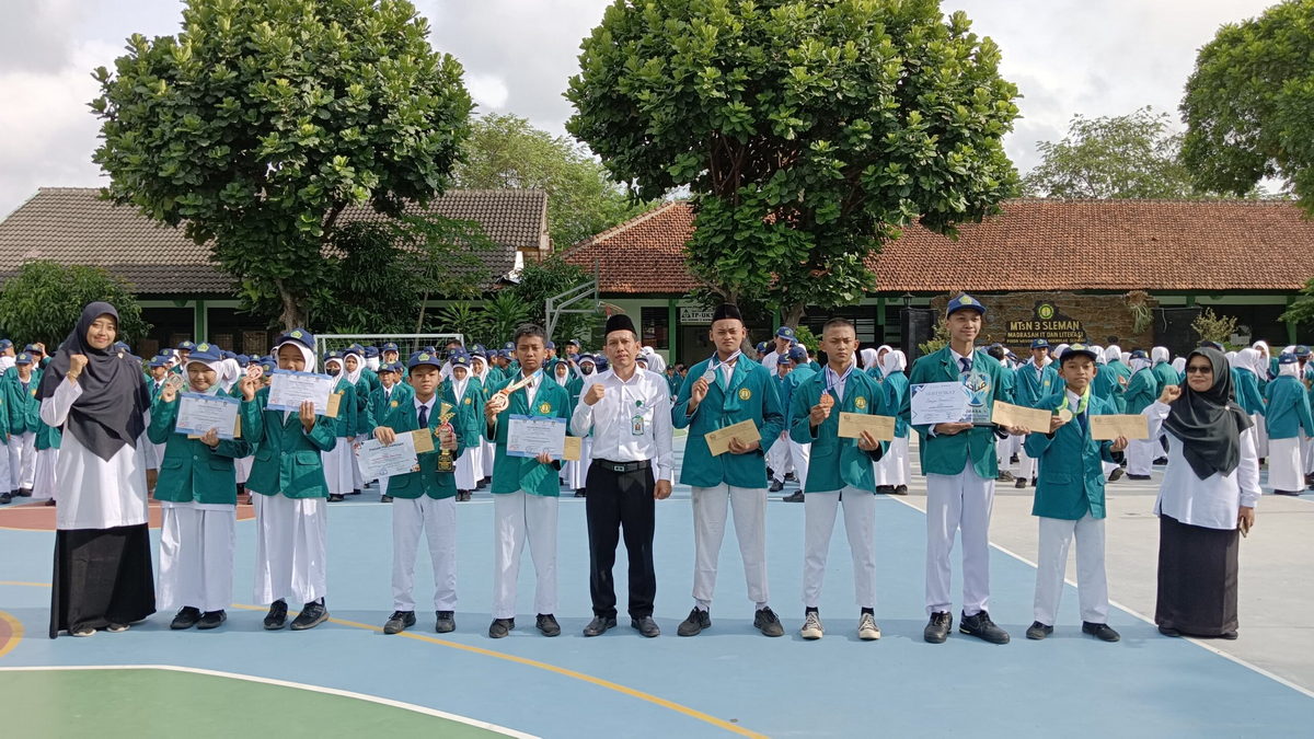 Sleman (MTsN 3 Sleman) — Memberikan penghargaan (reward) kepada siswa dapat meningkatkan motivasi belajar dan memberikan rasa percaya diri bagi mereka. Penghargaan juga dapat memotivasi siswa untuk terus berusaha dan lebih berprestasi. Penghargaan dapat diberikan dalam bentuk pujian, hadiah, atau bentuk lain yang sesuai dengan prestasi siswa. Hal tersebut sudah rutin dilakukan oleh MTsN 3 Sleman dalam rangka mengapresiasi keberhasilan siswa meraih prestasi. Bertempat di halaman madrasah, Kepala Madrasah MTsN 3 Sleman Suwardi, S.S, M.Pd menyerahkan reward kepada delapan siswa peraih delapan kejuaraan pada Senin pagi (27/11/2023).