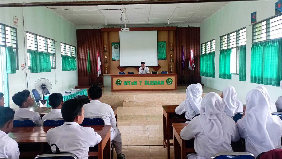 Sleman (MTsN 7 Sleman) – Guna memberikan pengetahuan dan keterampilan dalam setiap pengurus OSIS periode 2023/2024 yang baru saja dilantik, MTsN 7 Sleman menyelenggarakan pembekalan OSIS yang bertempat di Aula MTsN 7 Sleman, Senin (27/11/2023). Kegiatan ini dilaksanakan selama satu hari penuh yang memuat materi meliputi Kepemimpinan, Pembinaan mental dan kepribadian, Penyusunan Progam OSIS, Teknik Dasar Upacara, Praktik PBB (Peraturan Baris Berbaris), Organisasi dan penyusunan progam OSIS, dan kegiatan ditutup dengan Out Bond.