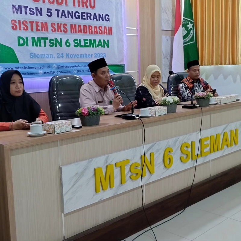 Sleman (MTsN 6 Sleman)–MTsN 6 Sleman menerima kunjungan MTsN 5 Tangerang hari Jumat (24/11/2023). Rombongan MTsN 5 Tangerang dipimpin Kepala MTsN 5 Tangerang ,Lilis Ismaliyah. Studi tiru akan difokuskan pada penyelengaraan program SKS (Sistem Kredit Semester) Madrasah di MTsN 6 Sleman.