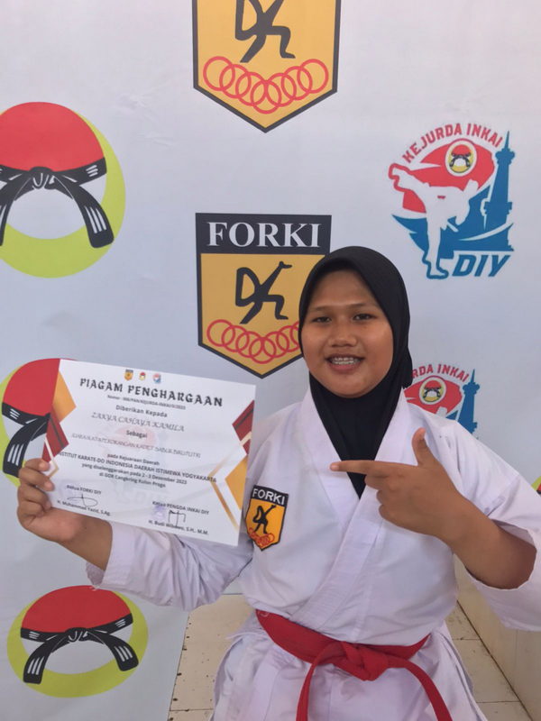 “Assalamualaikum, Bu… alhamdulillah saya menang juara 1 dalam Kejurda INKAI DIY,” kata Zakya, yang menyampaikan kegembiraannya kepada kehumasan MAN 4 Sleman.