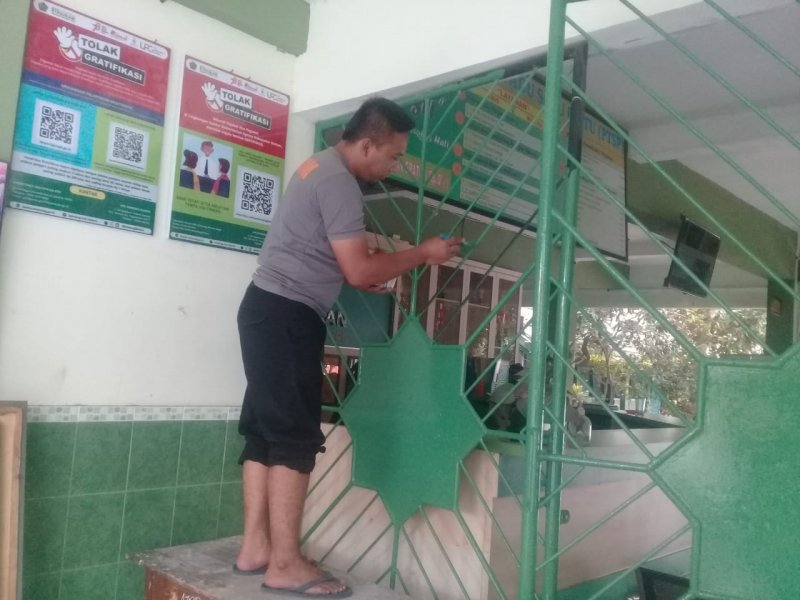 Sleman (MTsN 8 Sleman) – Untuk memperindah dan meningkatkan kenyamanan lingkungan madrasah, Wakil Kepala Madrasah Bidang Sarana dan Prasarana Erwan Budiyanto, S.Pd. bekerjasama dengan pegawai MTs N 8 Sleman pada Senin (27/11/2023) melakukan perawatan gerbang depan madrasah dengan pengecatan ulang pagar utama depan. Dengan adanya kegiatan ini diharapkan dapat meningkatkan keindahan bagian depan madrasah.