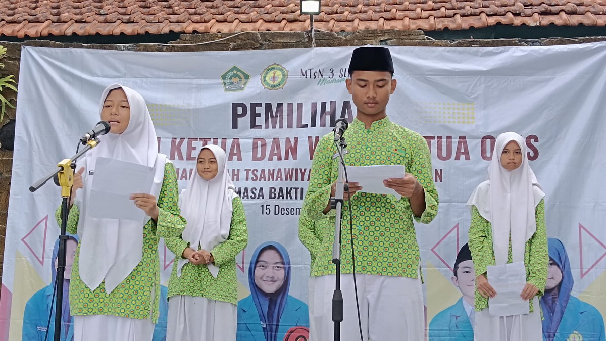Sleman (MTsN 3 Sleman) — MTsN 3 Sleman menyelenggarakan orasi calon ketua dan wakil ketua OSIM periode 2023/2024. Kegiatan ini diadakan dalam rangka mensosialisasikan visi misi dari para calon sekaligus untuk meyakinkan para pemilih dalam menentukan pilihannya pada momen pesta demokrasi. Orasi diselenggarakan pada Rabu pagi (13/12/2023) di halaman madrasah dan disaksikan oleh seluruh warga madrasah.