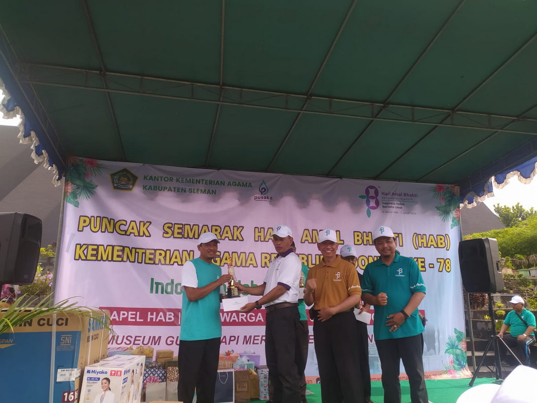 Sleman (MTsN 1 Sleman) – Imam Syamroni, Kepala MTsN 1 Sleman menerima hadiah kejuaraan lomba voli yang diselenggarakan oleh Kementerian Agama (Kemenag) Kabupaten Sleman dalam rangka semarak Hari Amal Bakti Kementerian Agama. Penyerahan hadiah yang berupa piala dan piagam penghargaan diserahkan secara langsung oleh Sidik Purnomo, Kepala Kemenag Sleman dalam acara Apel dan Bakti Sosial di Musium Gunung Merapi, Rabu (3/1/2024).