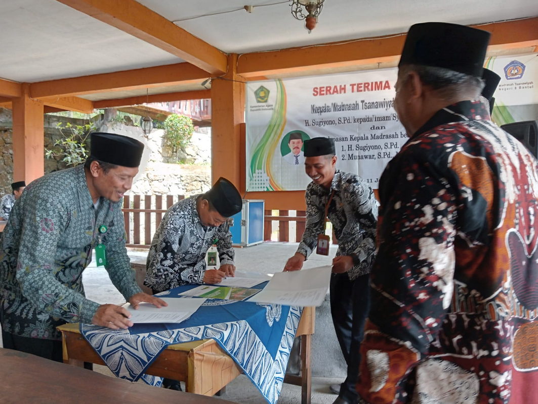 Sleman (MTsN 1 Sleman) â Imam Syamroni, kepala MTsN 1 Sleman mendapat tugas sebagai kepala madrasah di MTsN 8 Bantul yang beralamat di Jl Muntuk, Banjarharjo II, Dlingo, Bantul. Serah terima jabatan dengan kepala MTsN 8 Bantul dilaksanakan di Rumah Makan Olahan Ndeso Bukit Pengger, Jl Pleret-Patuk, Sendangsari, Terong, Dlingo, Bantul, pada Kamis (11/1/2024). Kegiatan ini dihadiri oleh komite, pengawas, guru, dan pegawai MTsN 8 Bantul dan 12 guru dan pegawai dari MTsN 1 Sleman.
