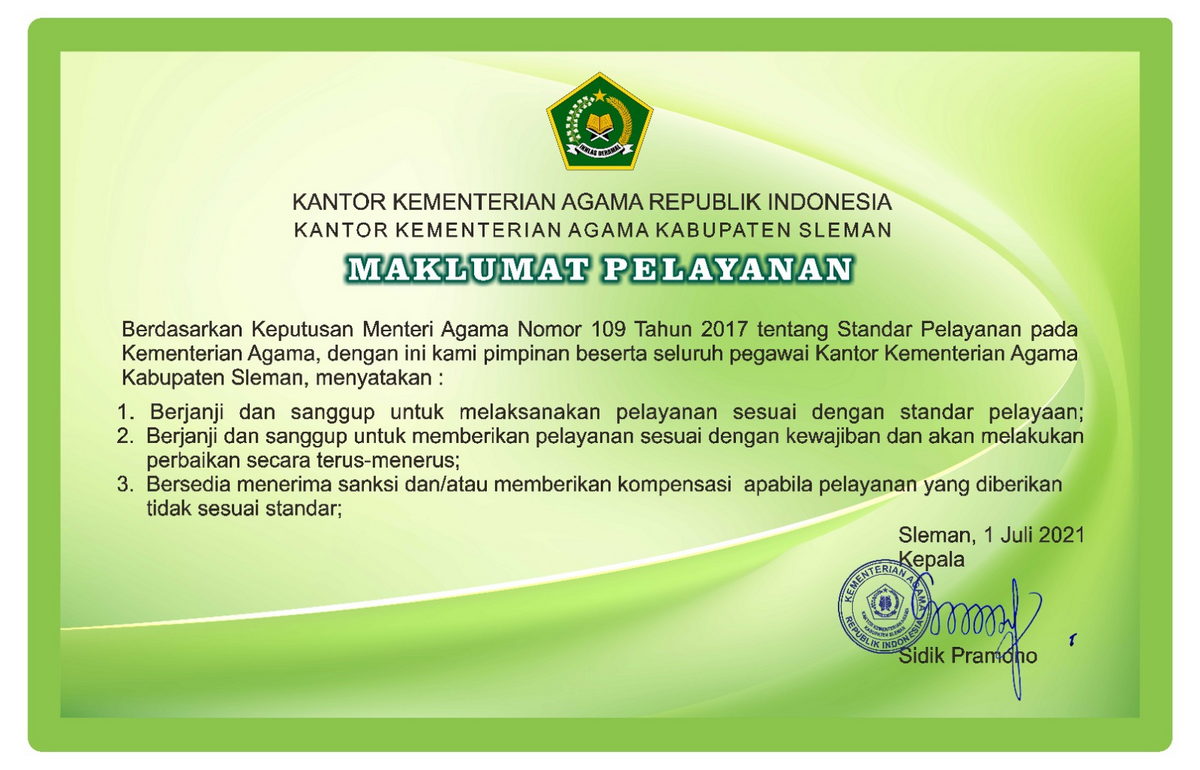 Berita KemenagHeadline Maklumat Pelayanan Kantor Kementerian Agama Kabupaten Sleman 24 Januari 2024 Nismatun Dian Islami