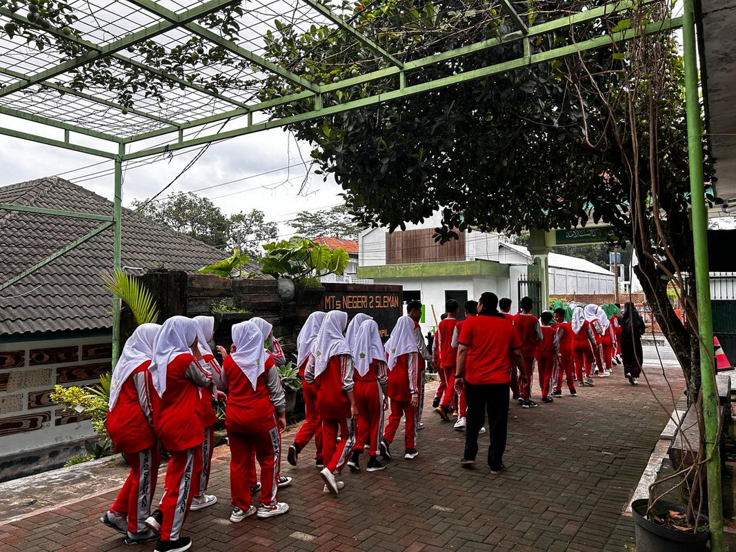 Sleman (MTsN 2) — Jumat (2/2/24), MTsN 2 Sleman menyelenggarakan program Jumat Sehat. Kegiatan ini diikuti oleh seluruh warga madrasah yang hadir meliputi guru, pegawai, dan seluruh siswa mulai dari kelas VII hingga IX. Total, ada sekitar 500 peserta jalan sehat.