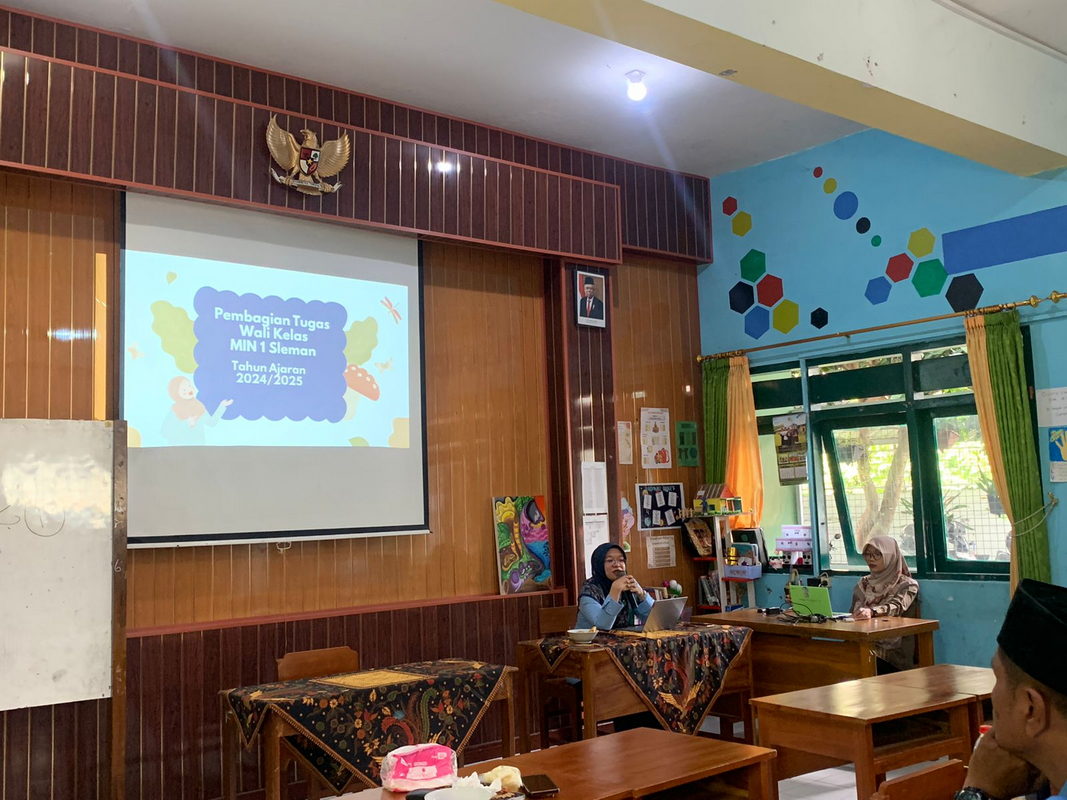 Selain pembagian tugas mengajar tahun ajaran 2024/2025, pada rapat ini juga disampaikan pembagian ruang kerja baru bagi beberapa pegawai dan strategi penguatan literasi di MIN 1 Sleman.