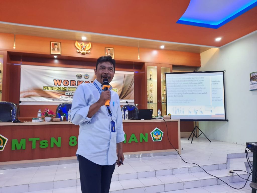 Kemenag Sleman News (MTsN 8 Sleman) – Pada hari Selasa (25/6/2024), MTsN 8 Sleman mengadakan workshop bertajuk “Konsep Asesmen dan Pengolahannya dalam Kurikulum Merdeka” di Aula MTsN 8 Sleman. Workshop ini dipandu oleh Pengawas SMP Dinas Pendidikan Kabupaten Sleman, Drs. Warjianto Panca Wasono, M.Hum., yang hadir sebagai pemateri utama. Acara ini dihadiri oleh seluruh guru MTsN 8 Sleman yang antusias untuk memperdalam pemahaman mereka mengenai konsep dan penerapan asesmen dalam Kurikulum Merdeka.