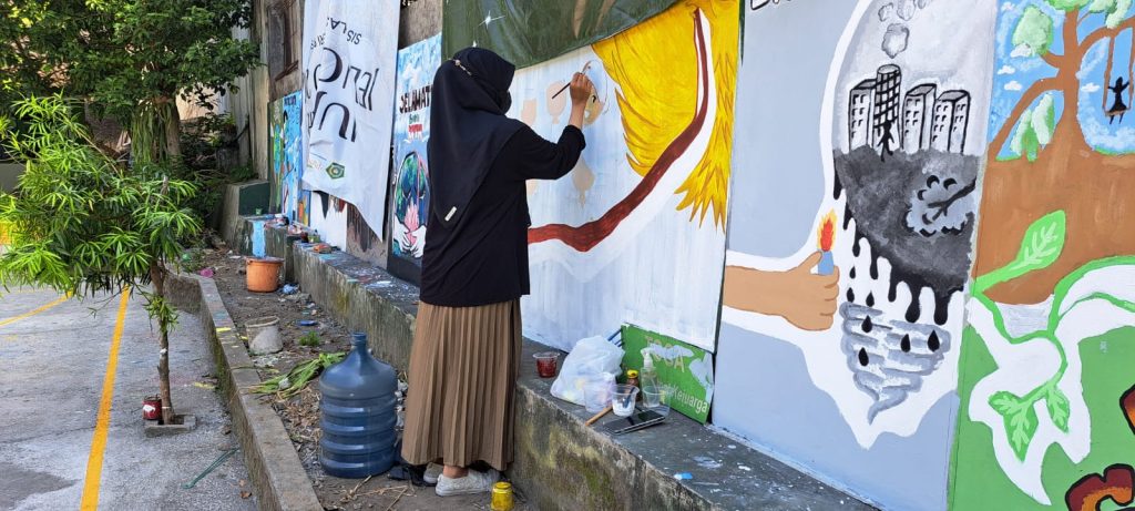 Manfaatkan Hari Libur Akademik, Guru MTs Negeri 9 Sleman Lakukan Pembuatan Mural dan Perawatan Tanaman