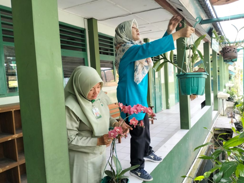 Kemenag Sleman News (MTsN 9 Sleman)- Guru-guru di MTsN 9 Sleman memanfaatkan hari libur akademik dengan berbagai kegiatan positif, seperti perawatan tanaman khususnya Tanaman Obat Keluarga (TOGA) dan bunga anggrek serta pembuatan mural. Kegiatan ini diinisiasi oleh Dina Andriyanti, selaku koordinator tim Adiwiyata, dan Tety Nur Fithriani, selaku koordinator lomba mural siswa.