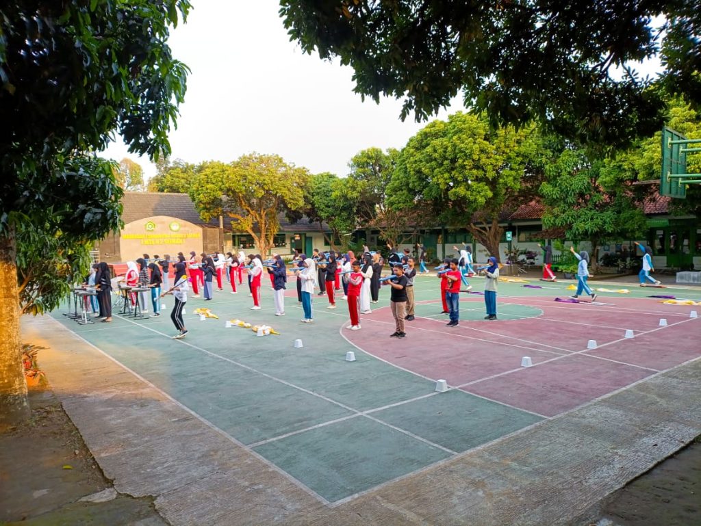 Isi Liburan dengan Kegiatan Positif, Tim Drumband MTsN 2 Sleman Lakukan Latihan di Madrasah