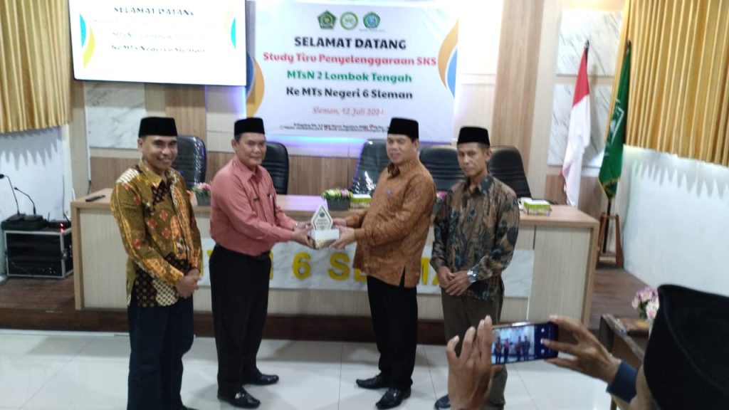 Kemenag Sleman News (MTsN 6 Sleman) –MTsN 6 Sleman menerima Kunjungan rombongan MTsN 2 Lombok Tengah Jumat (12/7/2024). Rombongan dipandegani Kepala Kantor Kemenag Lombok Tengah, Nasrullah, didampingi Kasi Dikmad Lalu Syahdi, Kepala MAN 2 Lombok Tengah, Kepala MIN 1 Lombok Tengah, Ketua Komite Madrasah Terpadu beserta Guru MTsN 2 Lombok Tengah yang diterima langsung Kasi Dikmad Kemenag Sleman, Tulus Dumadi, dan Kepala MTsN 6 Sleman.