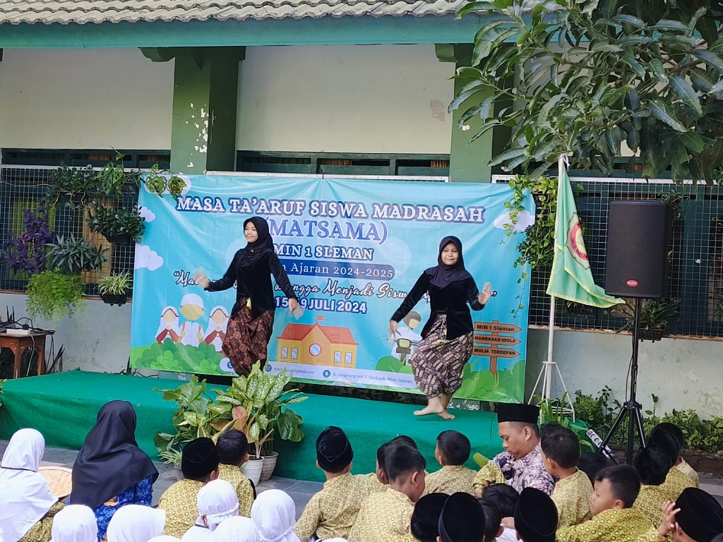 Pertama diawali dengan gerakan taekwondo dari siswa baru kelas 1b Sudirman Arvina Leuwih. Adapun Tari yang pertama dari 3a Alfarabi ( Dzikri, Arsaka, dan Guevara) adalah Tari Gegala gambaran para Ksatria yang gagah berani. Dilanjutkan Tari Prau Jarik dari 4a Ibnu Khaldun (Icha, Kania, Adinda)yang membuat penonton tertawa karena ada gerakan yang mengundang tawa atau jenaka. Berikutnya diikuti Tari Sayuk 6a Usman bin Affan ( Rostiara dan Kalila) diakhiri Vokal group 5a (Nadia, Damara, Nafisa) dengan persembahan lagu idgitaf yang berjudul “satu-satu”. Adapun mereka memilih lagu tersebut karena memiliki makna dan pesan mendalam mengenai bullying. Mengkisahkan langkah dari seseorang yang mencoba untuk merangkai kembali hidupnya satu persatu agar menjadi lebih baik lagi dan tulus memaafkan orang lain yang telah melukai meski tak mudah melupakan setiap omongan dan perbuatan orang tersebut. Kegiatan tentang gizi seimbang dikuatkan kembali di masjid MIN 1 Sleman kelas 1-3 oleh Bapak Daru Pratikno, S.Or dan Hilmy Pramushinta, S.Pd serta ruang kelas 4-6 oleh wali kelasΒ masing-masing.