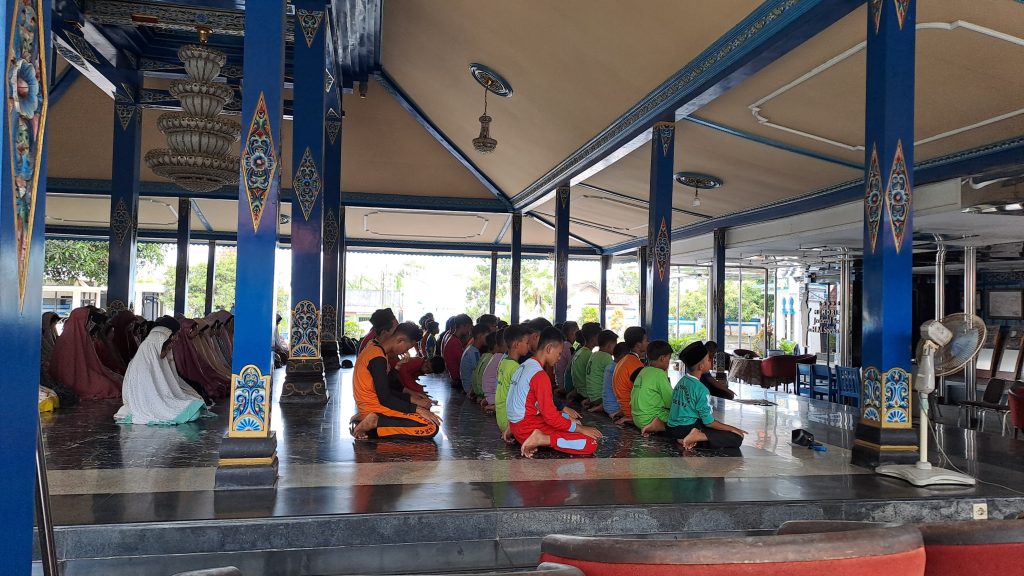 Makan siang dan sholat berjamaah juga di pendopo Soeharto yang berada ditengah museum. Alhamdulillah anak-anak tertib dan menjaga kebersihan, terang Sigit.