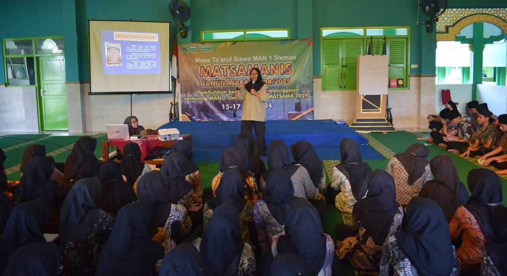 Kemenag Sleman News (MAN 1 Sleman) â FK Tagana Sleman memberikan materi tentang tanggap bencana dalam Masa Ta’aruf Siswa Madrasah (Matsama) di MAN 1 Sleman pada hari Rabu, (17/7/2024). Kegiatan ini bertujuan untuk meningkatkan kesadaran dan kesiapsiagaan para siswa terhadap bencana alam serta bagaimana menyelamatkan diri dan membantu rekan saat terjadi bencana. Kegiatan dilaksanakan di Masjid Al Himmah MAN 1 Sleman. Ada tiga pemateri yang hadir dari FK Tagana Sleman, yakni Indri Susiani, Tri Mardiyanto Hanggoro, dan Lutfi Arsi Astuti.