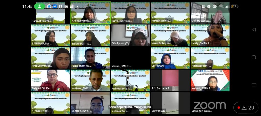 Kemenag Sleman News (MTsN 9 Sleman)- Pengelola UKS MTsN 9 Sleman yakni Irmayanti dan Susilo Wardoyo serta guru PJOK MTsN 9 Sleman Aris Junaedi berpartisipasi dalam workshop Penguatan Pendidikan Kesehatan yang dilaksanakan pada hari Rabu (17/7/2024) secara online melalui platform zoom meeting. Workshop ini terselenggara berkat kerja sama antara Kementerian Kesehatan, Kementerian Pendidikan Kebudayaan Riset dan Teknologi (Kemendikbudristek), dan Kementerian Agama. Ketiga instansi ini berkomitmen melakukan penguatan pendidikan kesehatan melalui pengembangan 22 topik perangkat ajar kesehatan. Kegiatan ini merupakan salah satu upaya untuk menyebarkan informasi terkait kesehatan serta meningkatkan kapasitas guru dalam membuat perangkat ajar kesehatan di satuan pendidikan.