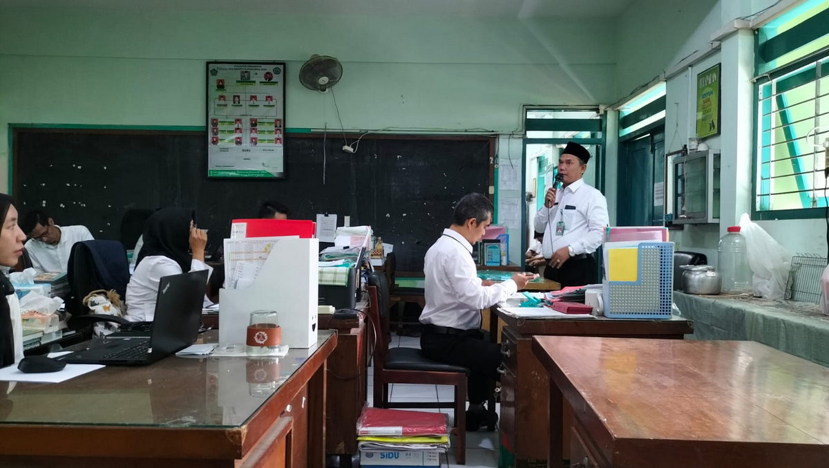 Kankemenag Sleman News (MTsN 6 Sleman)- Tahun ajaran 2024/2025 memasuki minggu kedua. MTsN 6 Sleman sudah memulai kegiatan belajar mengajar secara efektif. Pada Senin (22/7/2024) sebelum memulai aktivitas, Kepala MTsN 6 Sleman mengadakan briefing di ruang guru. “Kegiatan KBM mulai hari ini kita mulai secara efektif. Diharapkan Bapak/Ibu guru semua mengondisikan secara kondusif termasuk pada rutinitas tadarus pagi mari dimulai kembali,” imbau Jazim Kholis, Kepala MTsN 6 Sleman.