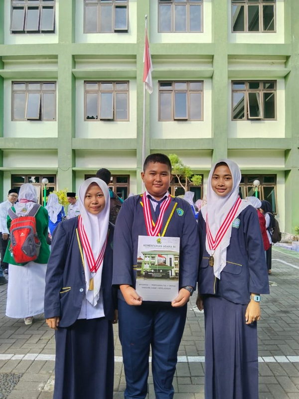 Kankemenag Sleman News (MTsN 6 Sleman) Ajang Kompetisi Sains Madrasah (KSM) Kabupaten Sleman yang digelar pada 2 Juli 2024 lalu membawa kemenangan bagi tim beregu bidang Sosial Sains Terpadu MTsN 6 Sleman. Seremoni penghargaan sekaligus pembinaan diberikan pada Senin (22/7/2024) di Kankemenag Kabupaten Sleman. Perolehan kejuaraan ini diraih atas nama Najwa Zafira, Naura Dwi, dan Hozi Noor.