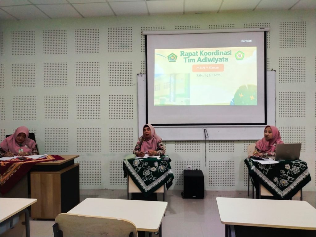 Kemenag Sleman News (MTsN 9 Sleman)- Tim Adiwiyata MTsN 9 Sleman mengadakan rapat koordinasi pada Rabu (24/7/2024) bertempat di ruang multimedia MTsN 9 Sleman. Rapat tersebut dipimpin oleh Dina Andriyanti selaku Koordinator Tim Adiwiyata. Rapat ini dihadiri oleh seluruh koordinator berbagai bidang kegiatan adiwiyata.