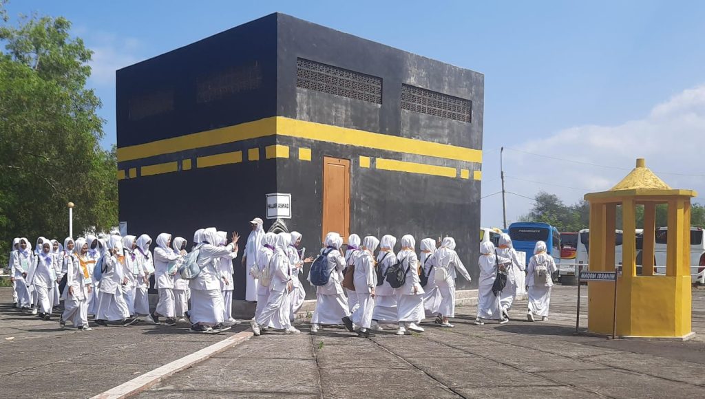 Kemenag Sleman News (MAN 1 Sleman) – Guna meningkatkan pemahaman terhadap materi pembelajaran Ibadah Haji, MAN 1 Sleman menggelar Manasik Haji bagi siswa kelas XI. Kegiatan berlangsung di komplek Miniatur Manasik Haji yang berlokasi di Bumi Perkemahan Dewa Ruci, Dusun Wonoroto, Gadingsari, Sanden, Bantul pada Senin (29/7/2024).