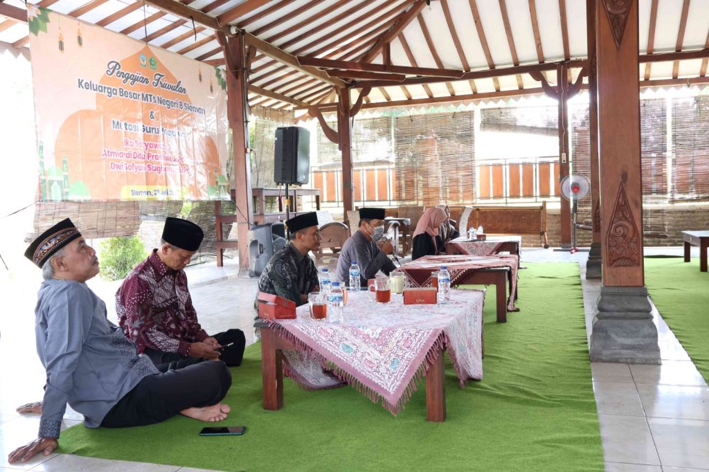 Kemenag Sleman News (MTsN 8 Sleman) – Pada Minggu (28/7/2024) MTsN 8 Sleman mengadakan pengajian triwulan yang dihadiri oleh seluruh keluarga besar madrasah. Acara tersebut diselenggarakan di rumah makan Sego Kembul, dan dihadiri oleh Pengawas Pembina MTsN 8 Sleman, Drs. Mujiyono, M.Pd.I. Dalam sambutannya, beliau mengapresiasi kegiatan pengajian ini sebagai upaya yang sangat baik untuk mempererat silaturahmi di antara keluarga besar MTsN 8 Sleman. Menurut beliau, kegiatan seperti ini tidak hanya bermanfaat untuk meningkatkan ilmu pengetahuan, tetapi juga untuk saling mengenal satu sama lain di lingkungan MTsN 8 Sleman.