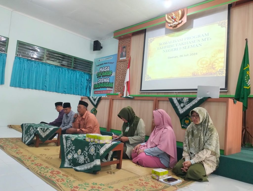 Kepala MTs Negeri 9 Sleman yakni Siti Juwariyah, dalam sambutannya menjelaskan bahwa program tahfidz takhasus ini bertujuan untuk mempersiapkan generasi qur’ani dan menjadi wadah bagi terselenggaranya tahfidzul qur’an bagi seluruh siswa. Selain itu, pendampingan secara intensif dilakukan setiap hari mulai pukul 06.00 WIB dengan mendatangkan ustadzah pengampu hafidz hafidzoh dari Pondok Pesantren Sunan Pandanaran dan Pondok Pesantren Nurul Ummah sebagai program percepatan untuk pencapaian target hafalan minimal 2 Juz.