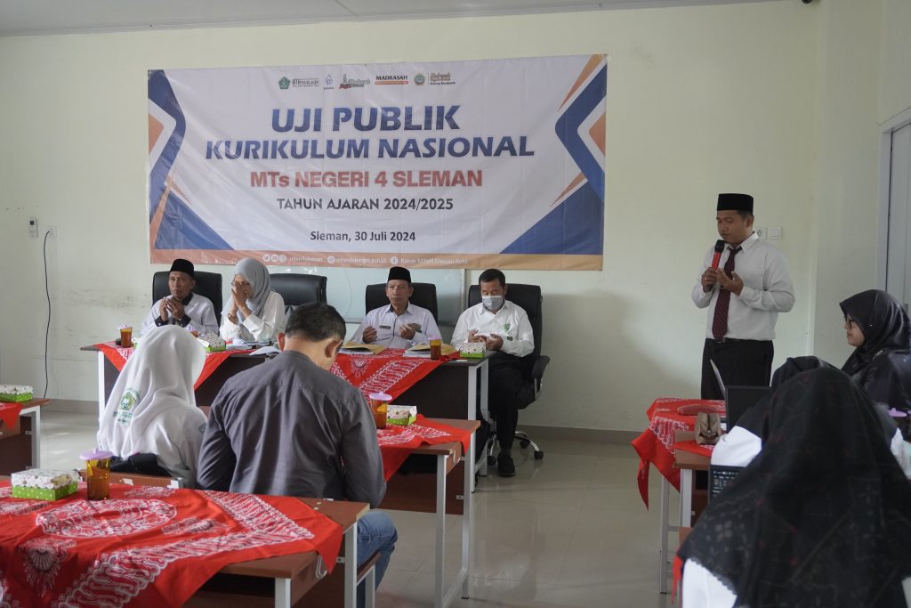 Kemenag Sleman News (MTsN 4 Sleman) – MTsN 4 Sleman menyelenggarakan Uji Publik Kurikulum Madrasah untuk tahun ajaran 2024/2025, Selasa (30/07/2024). Kegiatan tersebut dihadiri oleh JFT Pengembang Teknologi Pembelajaran Ahli Muda pada Seksi Kurikulum dan Kesiswaan Bidang Pendidikan Madrasah Kantor Wilayah Kementerian Agama DIY, Hj. Anita Isdarmini, S.Pd., M.Hum dan Kasi Pendidikan Madrasah Kantor Kementerian Agama kabupaten Sleman, Bpk Drs. H.Tulus Dumadi, M.A., sebagai narasumber.  Selain itu, kegatan tersebut juga dihadiri Pengawas Pendamping, Ketua Komite, dan juga perwakilan siswa dan wali siswa kelas VII, VIII, dan IX.