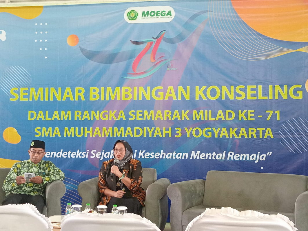 Kemenag Sleman News (MTsN 1 Sleman) — Guru Bimbingan dan Konseling (BK) MTsN 1 Sleman, Siti Rohmiati, pada Jumat (2/8/2024) mengikiti Seminar Bimbingan dan Konseling dengan tema “Medeteksi Sejak Dini Kesehatan Mental Remaja” yang diselenggarakan oleh Panitia Milad SMA Muhammadiyah 3 Yogyakarta Ke 71, bertempat di Aula Kampus 3 SMA Muhammadiyah 3 Yogyakarta.