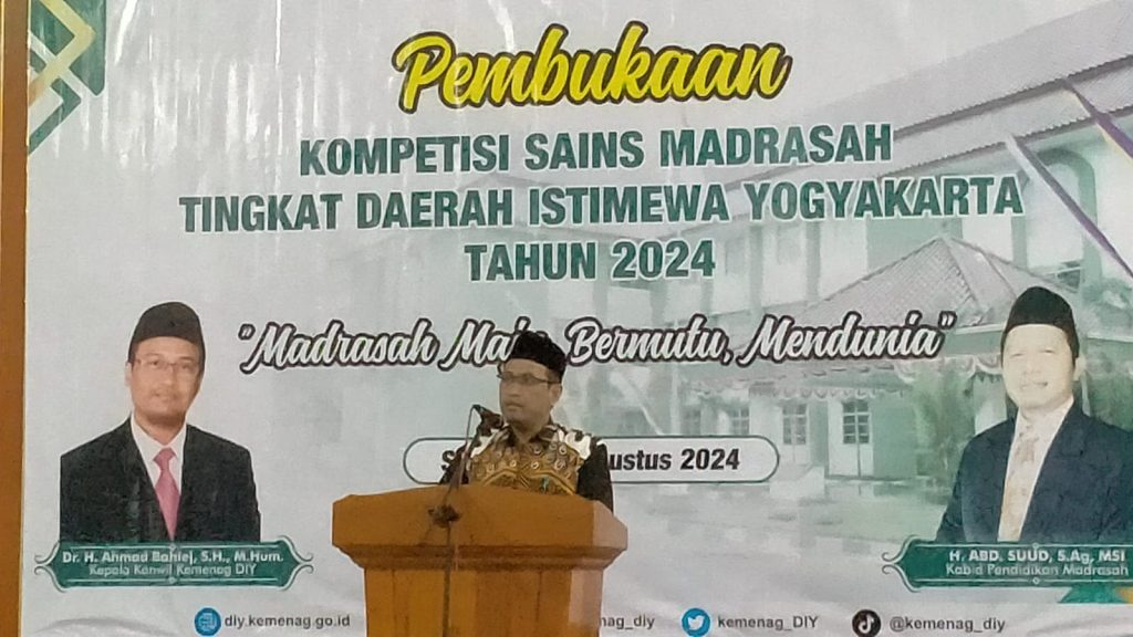 Kemenag Sleman News (MTsN 9 Sleman)- Siti Juwariyah, Kepala MTsN 9 Sleman menghadiri acara pembukaan Kompetisi Sains Madrasah (KSM) tingkat DIY pada hari Kamis (1/8/2024) di MAN 5 Sleman. Acara dimulai dengan penyajian dua tarian oleh siswa-siswi MAN 5 Sleman yang memukau. Turut hadir dalam acara tersebut pejabat Kantor Wilayah Kemenag khususnya Kepala Kanwil Kemenag DIY yakni Ahmad Bahiej, Kepala bidang Pendidikan Madrasah, pelaksana bidang pendidikan madrasah, Kepala Kantor Kemenag Kabupaten/Kota, Kepala Seksi Pendidikan Madrasah Kabupaten/Kota, Ketua Pokjawas DIY, serta Kepala MI, MTs, dan MA baik negeri maupun swasta.