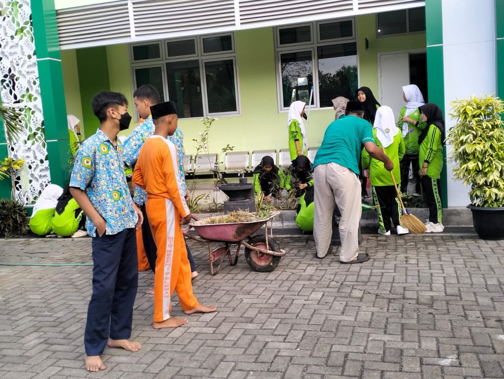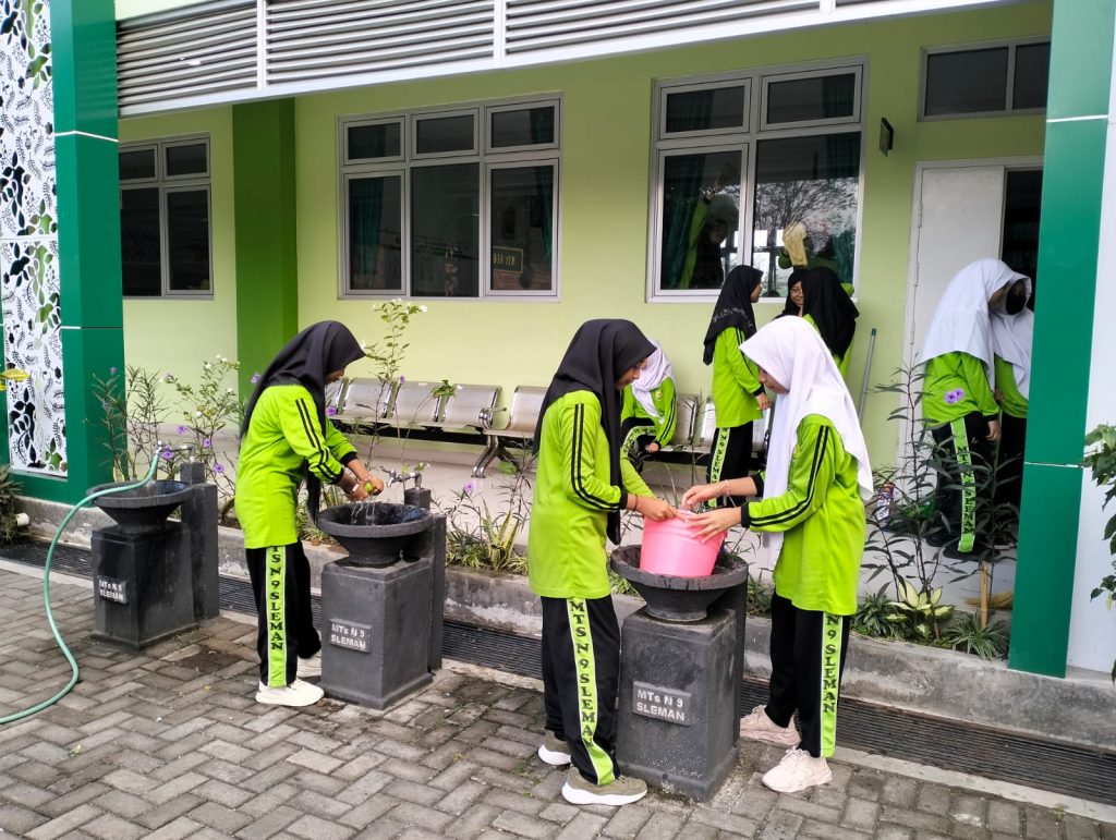 Kemenag Sleman News (MTsN 9 Sleman)- Pada Jumat pagi (02/08/2024) MTsN 9 Sleman menggelar kegiatan Jumat Bersih. Sesuai jadwal yang telah dirancang oleh Tim Kurikulum MTsN 9 Sleman, setelah agenda Jumat Sehat minggu lalu maka pada Jumat minggu ini dilaksanakan Jumat Bersih. Kegiatan Jumat Bersih dilakukan dengan kerja bakti membersihkan lingkungan dalam serta sekitar madrasah.Kegiatan ini dilaksanakan mulai pukul 07.00 hingga 08.00 WIB. Kegiatan ini diikuti oleh seluruh siswa, guru dan pegawai MTsN 9 Sleman.