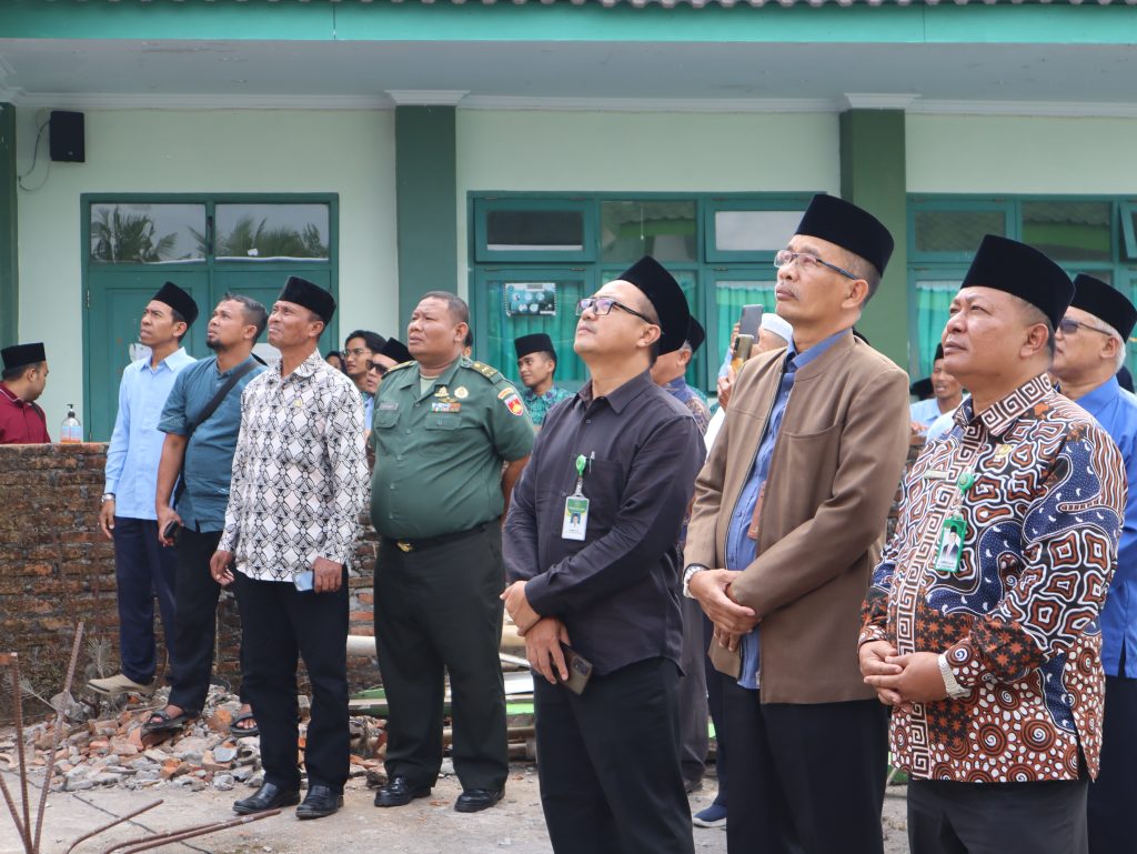 Prosesi pemasangan mustaka masjid disaksikan oleh seluruh hadirin, dan diiringi dengan sholawat nabi yang dibawakan oleh grup hadroh Siswa MAN 4 Sleman, kemudian diakhiri dengan doa yang dipandu oleh Kepala KUA Kapanewon Pakem, Nasrodin Sugiyanto, S.Ag., M.Si. (dzl/tnf)