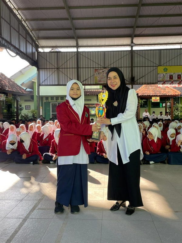 Rasa bangga terpancar dari wajah sang juara. “Alhamdulillah,senang dapat juara,” ungkap Dini singkat. Apresiasi dan aplouse mengiringi penyerahan ulang tropi oleh Kepala TU Eliya Fitriyani, S.H., M.M. pada apel pagi Senin (5/8/2024).
